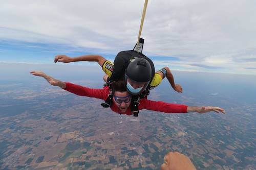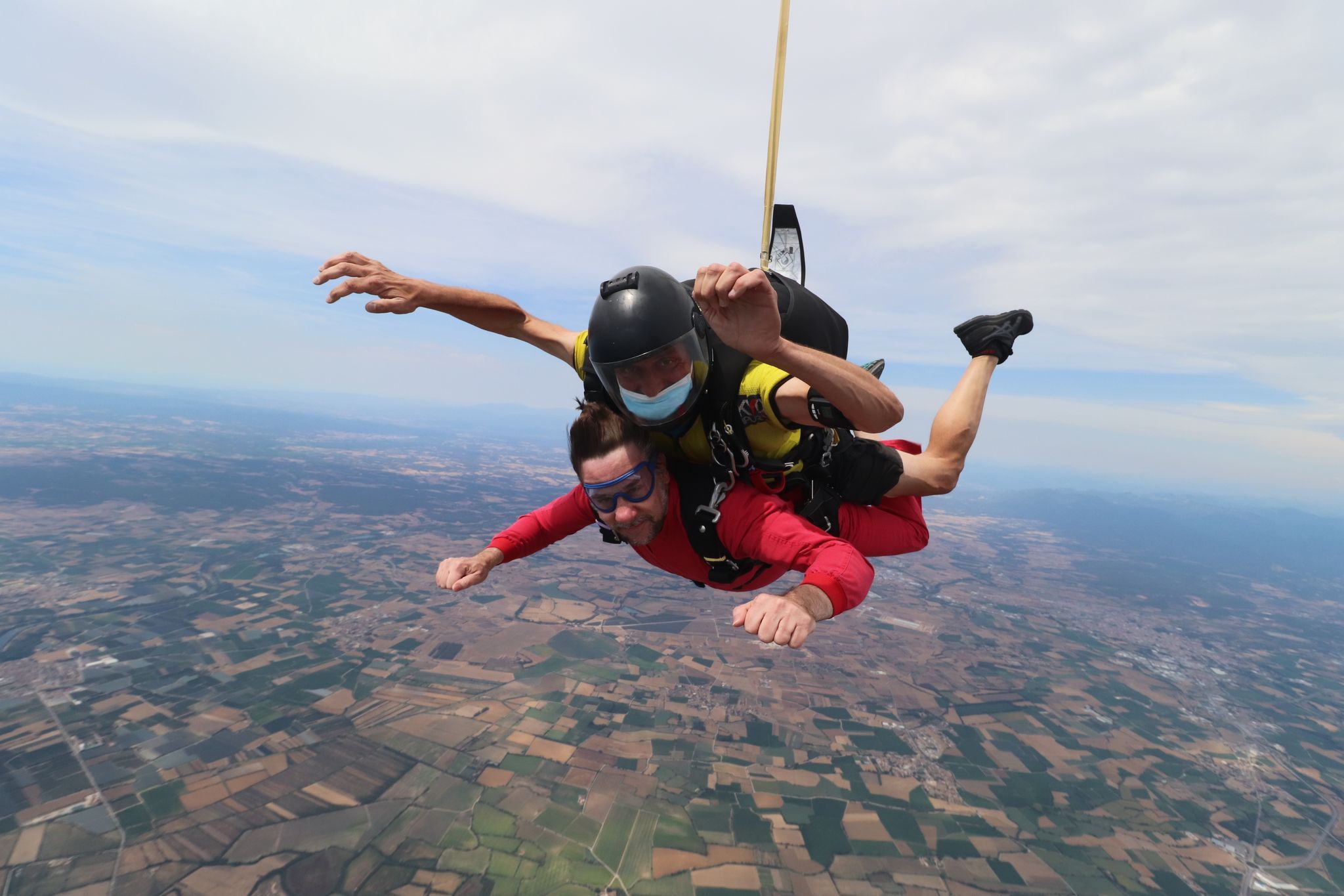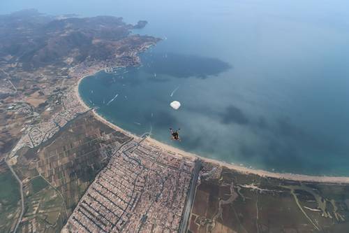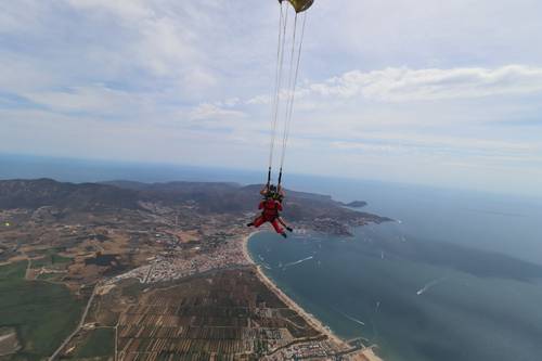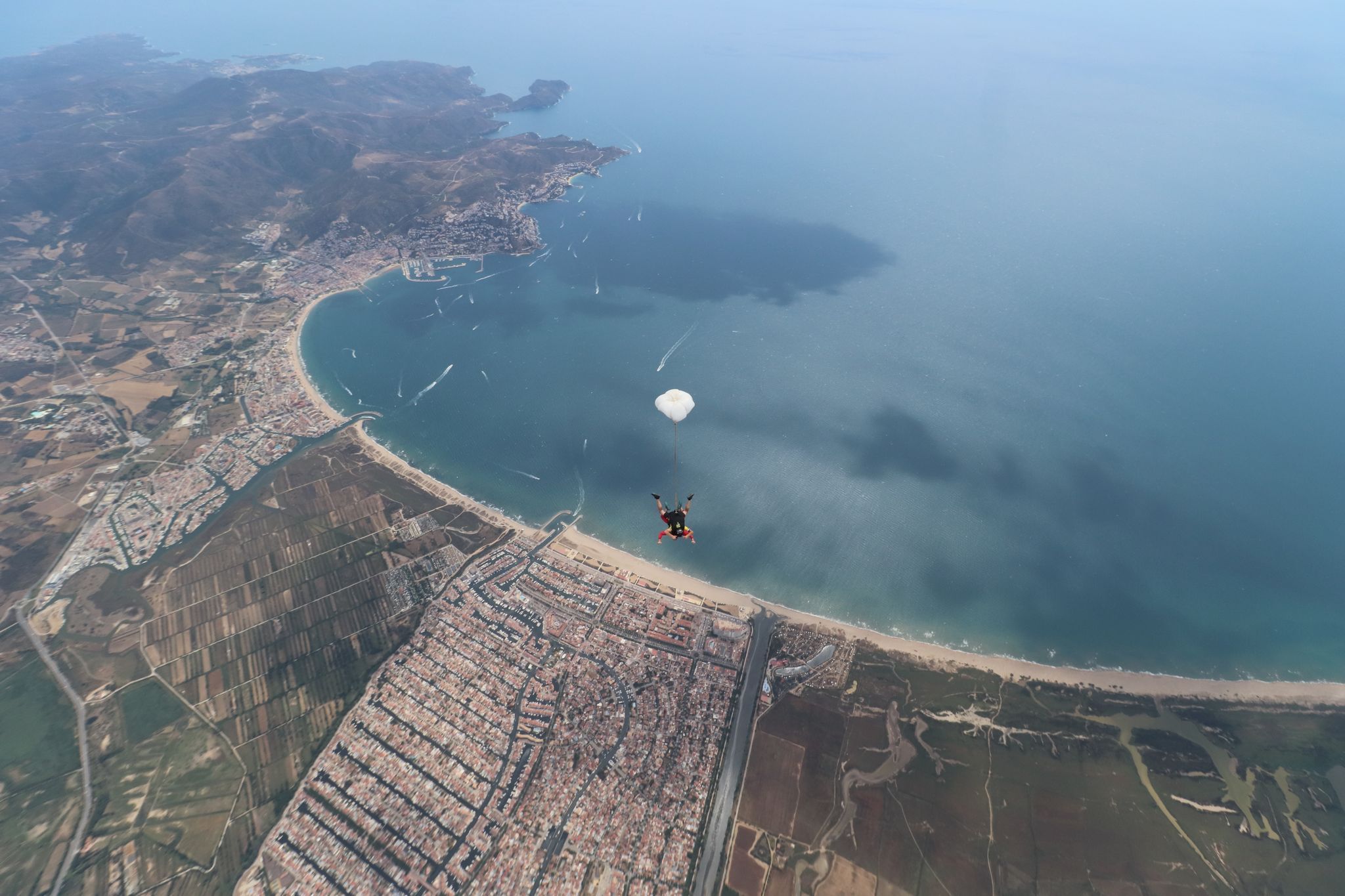 Puges en avioneta fins als 4000 metres, saltes en caiguda lliure durant casi un minut, als 1500 metres l'instructor obre el paracaigudes i baixes