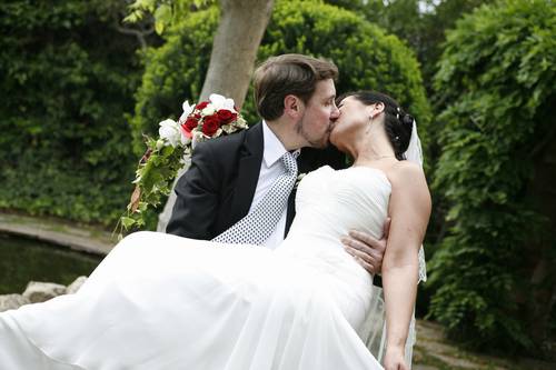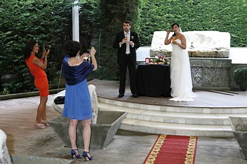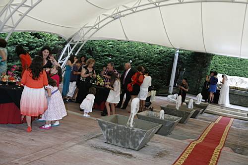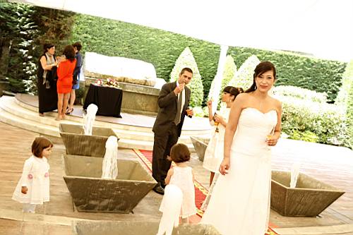 Mentre els convidats s'acaven l'aperitiu i van entrant al menjador, nosaltres dos anem a l'estany del jardí a fer-nos unes