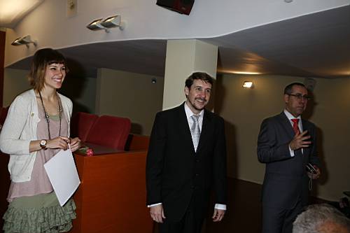 ha deixat de ploure els jardins son un fangar i hem de traslladar l'acte a l'interior de l'Ajuntament, a la Sala de Plens que hi ha al