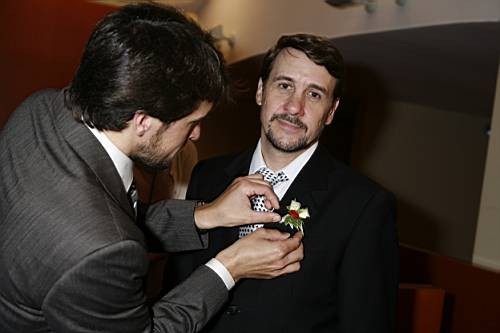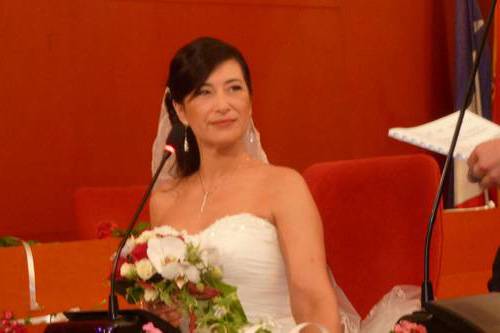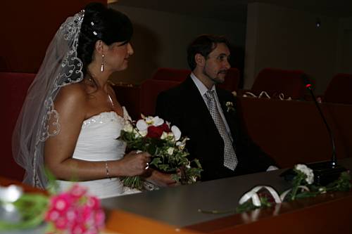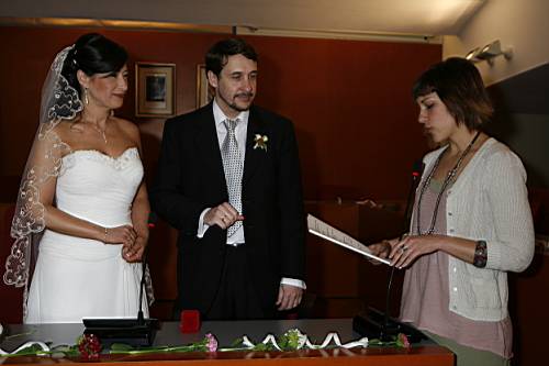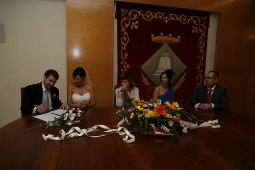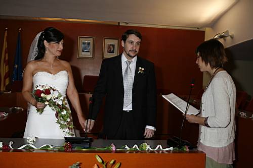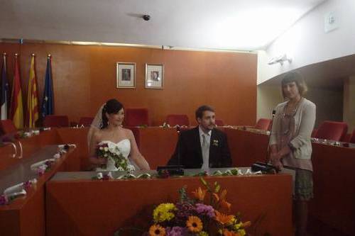 Quan hi arribem, la regidora que ens ha de casar ja hi és, i a la poca estona arriba el Roger, que em lliura el ramet de