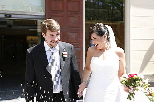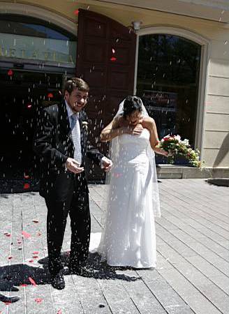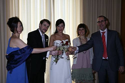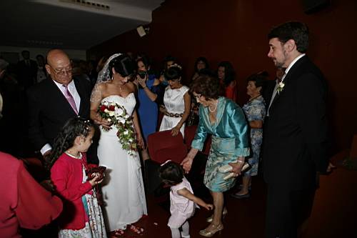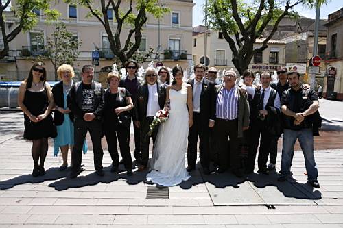 Quan finalment sortim nosaltres, ens cau la tradicional pluja d'arròs, i comencem les salutacions a familiars i amics.