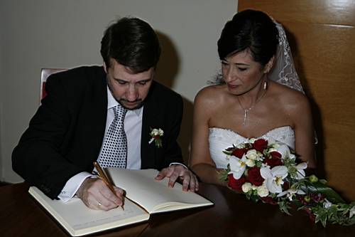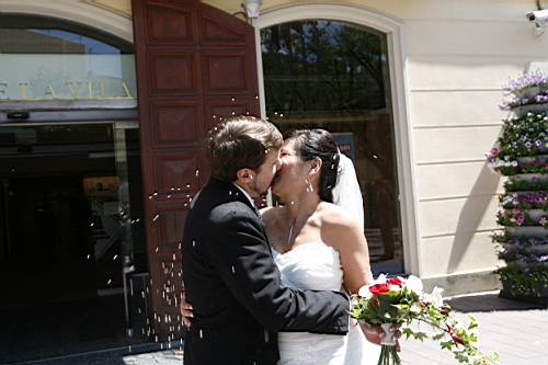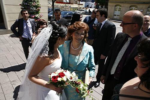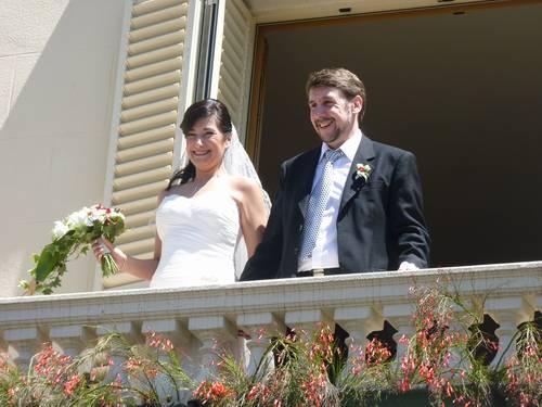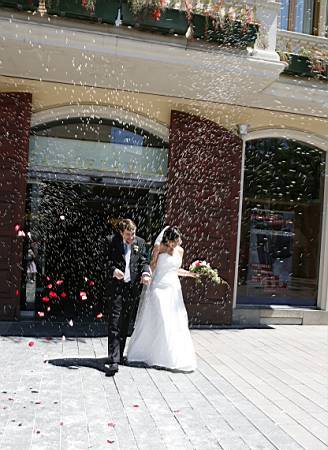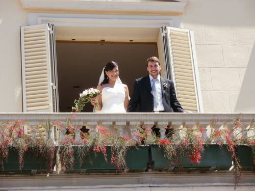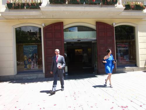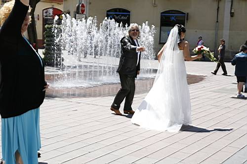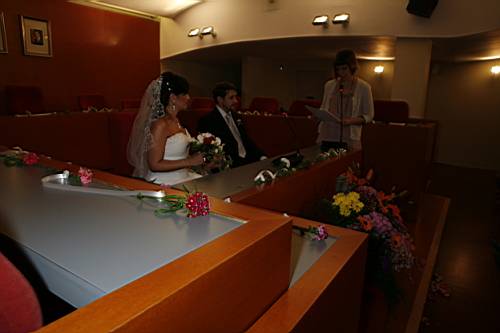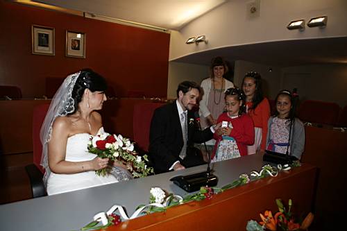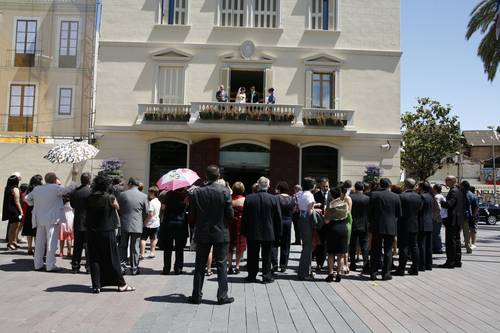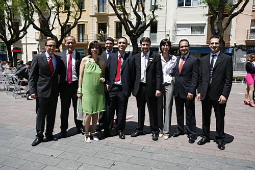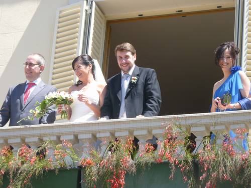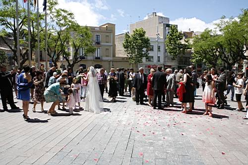 Un cop acabada la cerimònia tots els convidats surten a la plaça, i nosaltres, junt amb els testimonis, pugem a una sala del