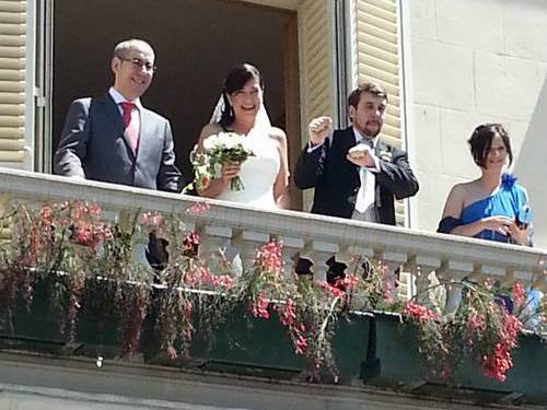 Després sortim al balcó per saludar a la multitud que ens espera a la plaça.