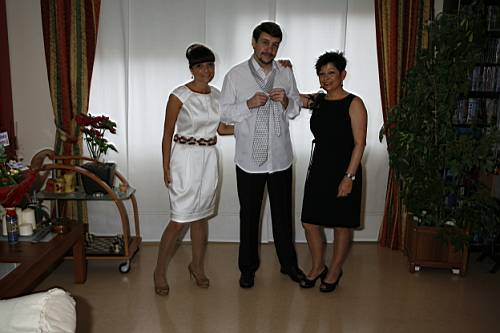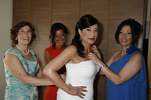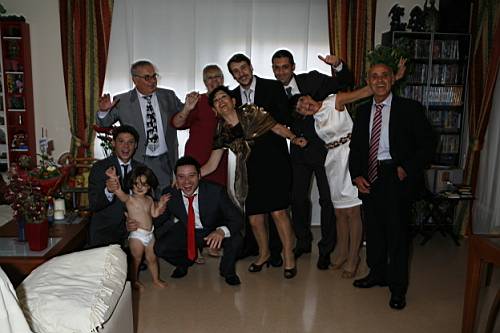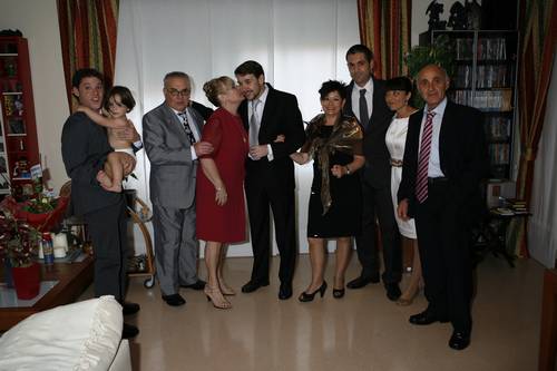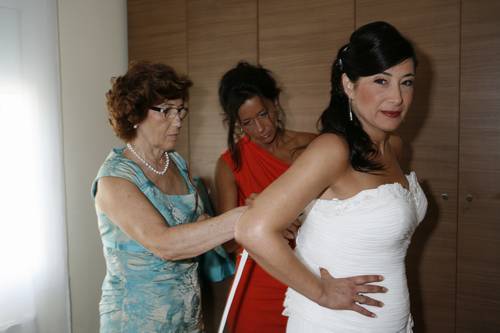 La cosina Mari primer i la meva mare després (quan aconsegueix arribar amb l'aiguat que està caient) m'ajuden a posar-me guapo.