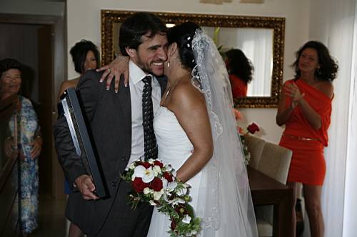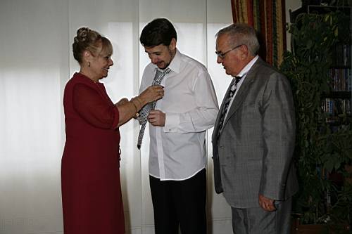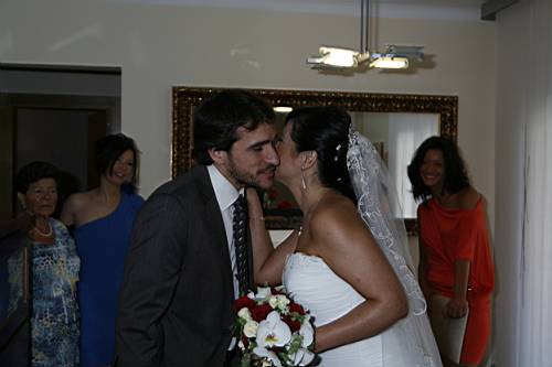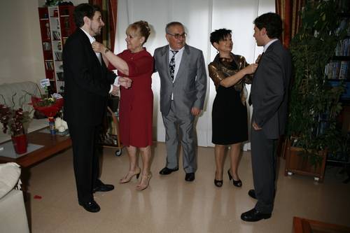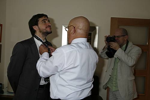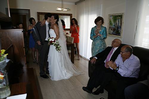 Mentrestant, el Roger, que farà de padrí, ja ha arribat i l'Alfonso li dóna els últims retocs. Quan l'Eva està llesta, el Roger li lliura el