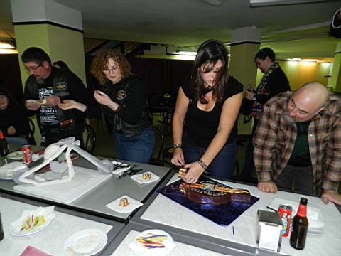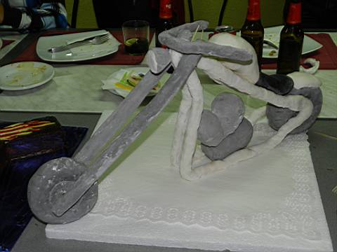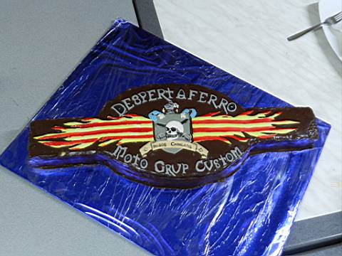 La moto i el pastis amb els nostres colors van ser un regal sorpresa dels nostres amics de les Rates de Claveguera, realitzat per la Pepi