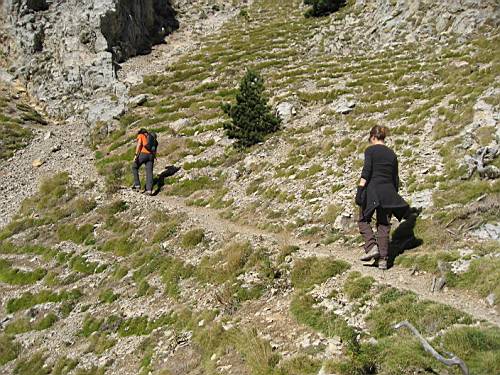 La baixada té moments més complicats que la pujada, sobretot per la zona de la tartera, on tots anem més d'un cop per terra.