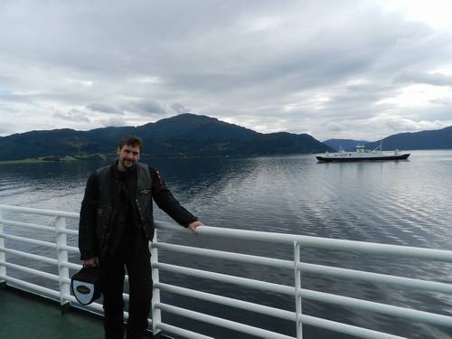 el minut de rigor. Arribem al següent ferry, de Linge a Eisdal, tan curtet que ni ens separem de la moto. Pugem a un altre port, i al