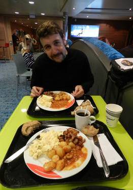 Lligada la moto, deixem tota la roba de cordura a unes taquilles i anem a fer un esmorzar com deu mana: ous remenats, bacon, patates