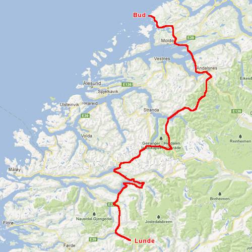 la E39 ens dirigim a la darrera de les carreteres turístiques nacionals, que bordeja tota la costa. Al començament molt bé, però