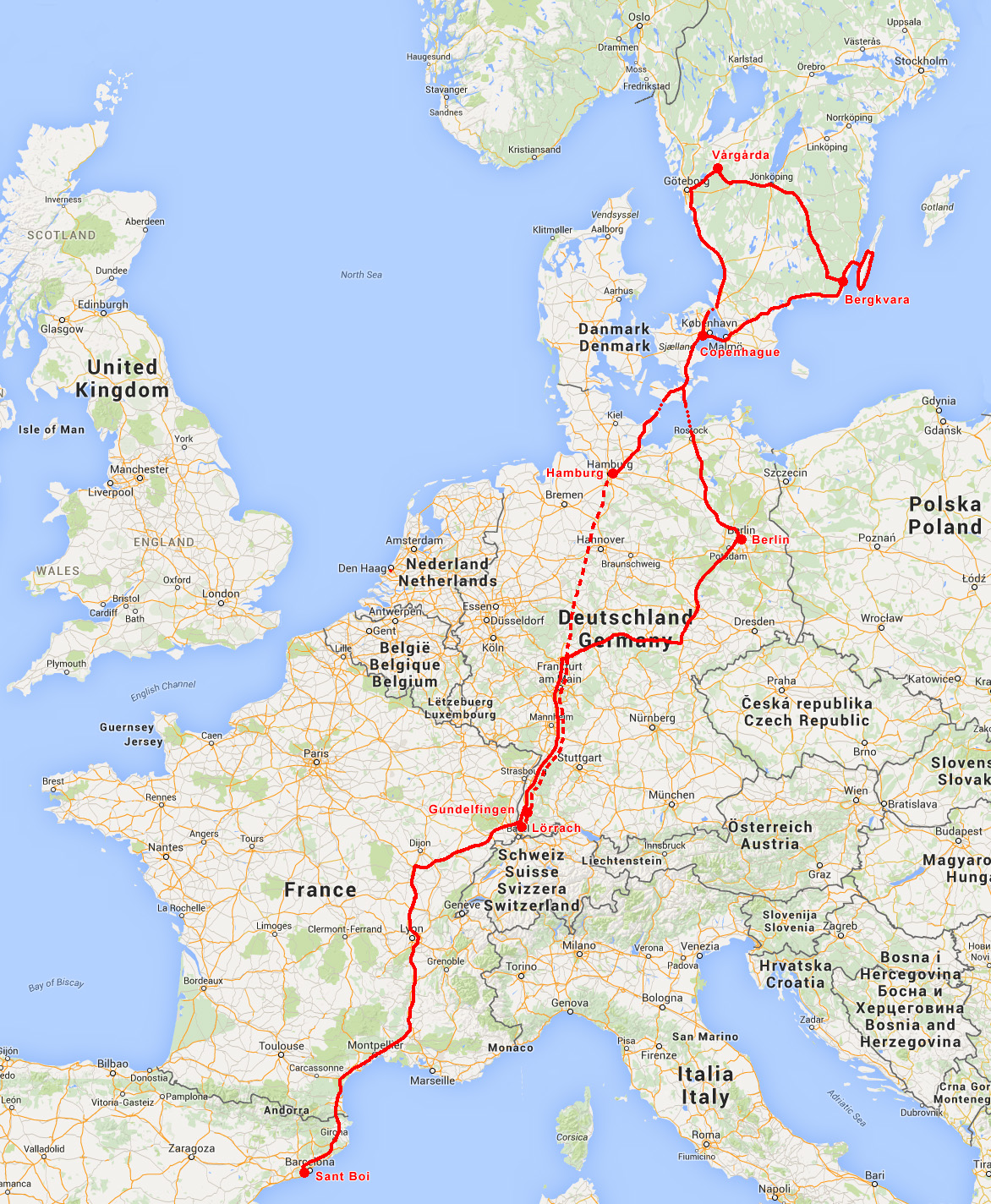 Al final han estat 10 dies de viatge per 5 països (Catalunya, França, Alemanya, Dinamarca i Suècia), amb un total de 5.260 km