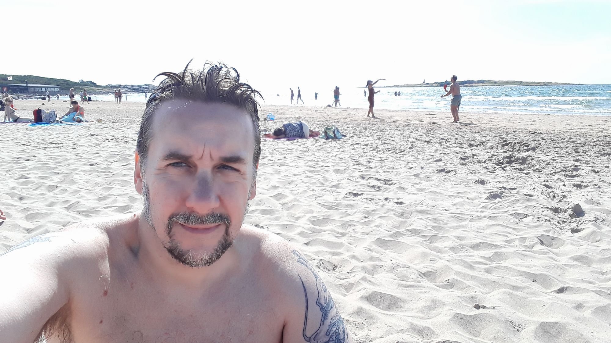 Deixo la maleta i agafo el cotxe per anar a Tylösand. Aparco en un carreró i vaig a la platja a fer el primer bany de la temporada. L’aigua es freda,
