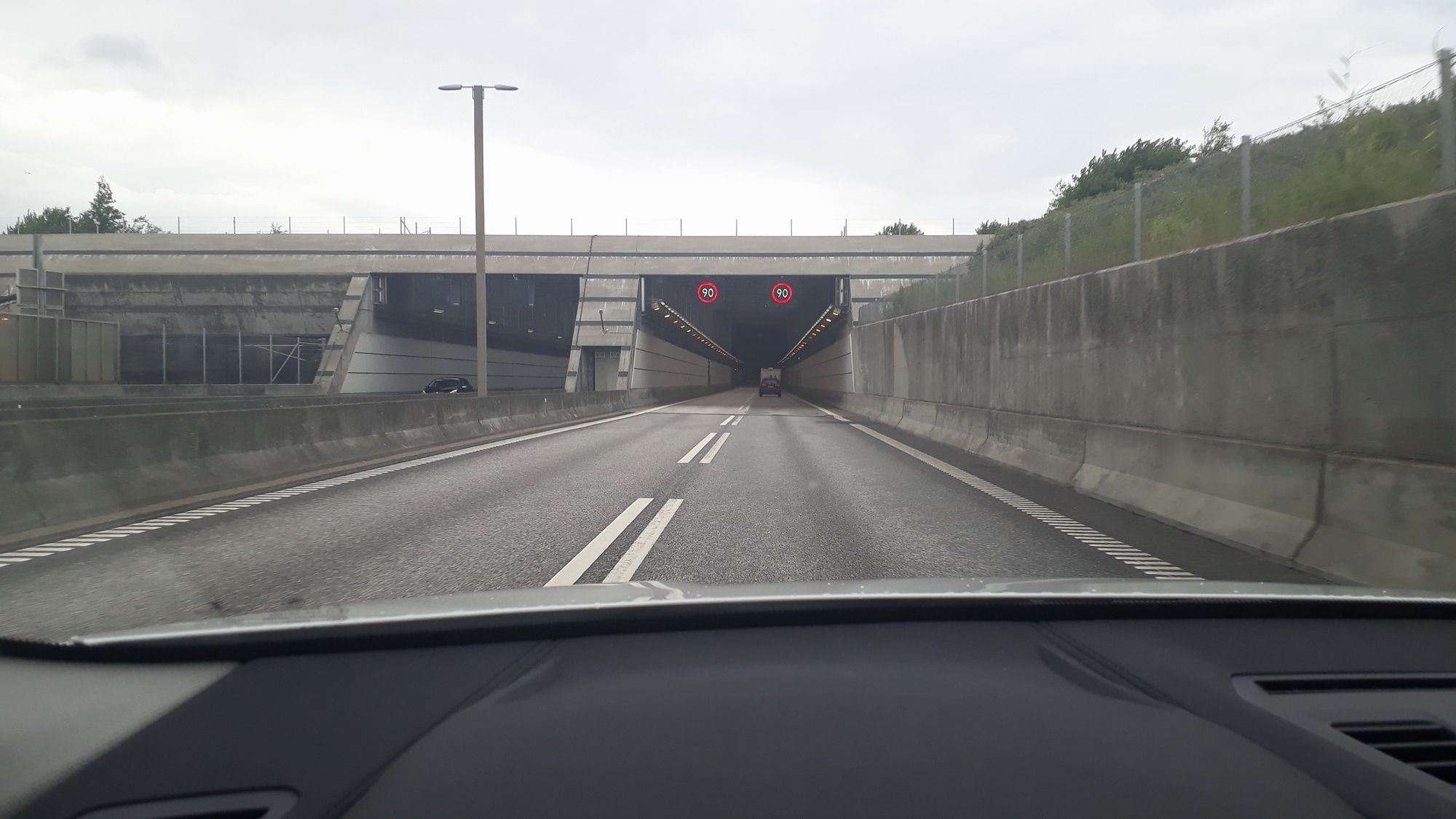 l’Öresundsbron de tornada diumenge, però no em dono conte de que el GPS m’està portant cap al túnel fins que ja és massa tard i no puc rectificar.