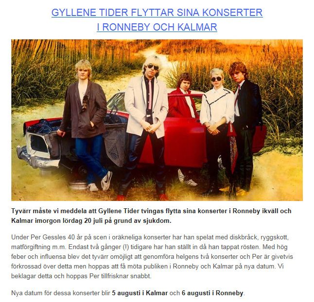 GYLLENE TIDER MOU ELS SEUS CONCERTS A RONNEBY I KALMAR |