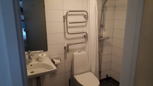 he dit que no, que parlés en suec però més a poc a poc. I ens hem entès la mar de bé. L’habitació és minúscula, un llit de 135, una nevereta amb la