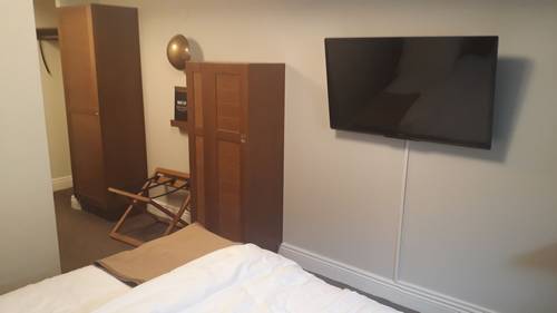 tele a sobre, un penja-robes (cap armari) i una minitaula amb cadira. En fi, perquè més? El bany està prou bé.