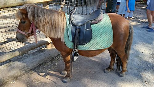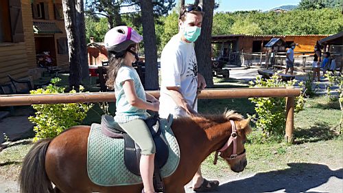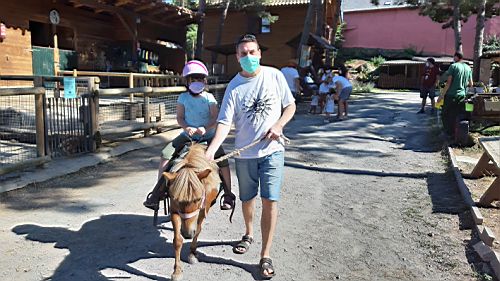 Després de dinar ens instal·lem a la nostra casa i anem a fer una de les activitats disponibles pels menuts: la volta en poni. A la