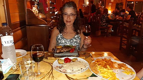 I nosaltres gaudim d'una torrada d'escalivada i un trinxat amb botifarra negre de primer, un parell d'entrecots de segon, i pastís de