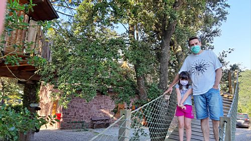 haviem d'anar amb la Martina em va cridar més l'atenció les cases de l'arbre, concretament la que té un altell amb llits pels nens.