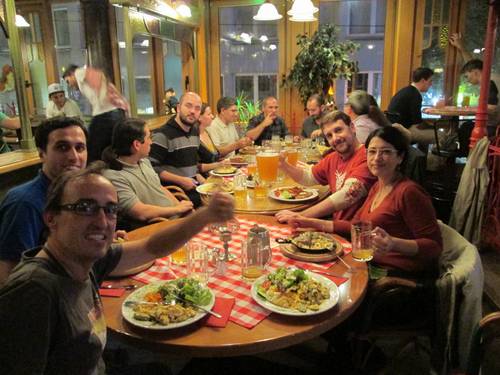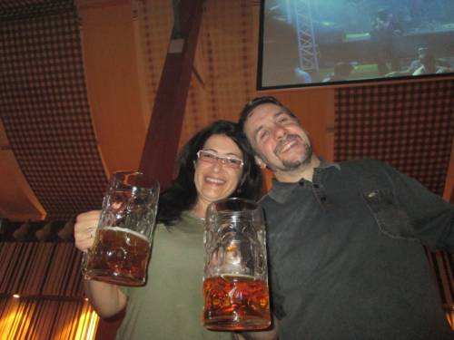 todos vamos a cenar a un restaurante, donde volvemos a atacar a las especialidades típicas alemanas igual que en el viaje de este verano.
