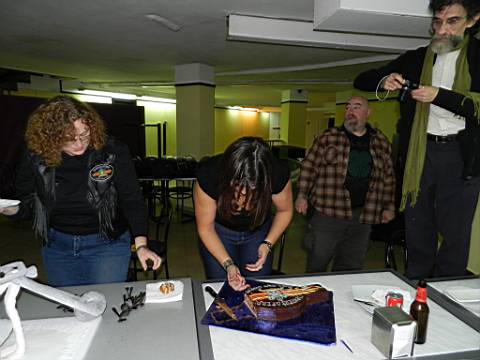 La moto i el pastis amb els nostres colors van ser un regal sorpresa dels nostres amics de les Rates de Claveguera, realitzat per la Pepi