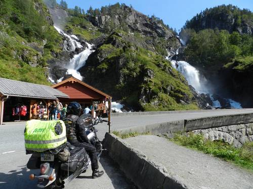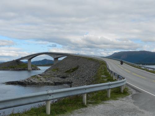 Anem tirant, i mentre fem unes fotos a un pont molt espectacular, ens passen un grup de 10 motos amb matrícula noruega. Les acabem