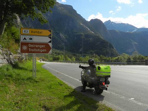 Ens fem la foto de rigor a la cruïlla amb el rètol de la Trollstigen i al senyal de "perill de trolls". Comencem a pujar. La carretera és
