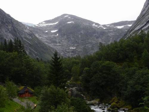 Quan seguim carretera des de Hellesylt, se'ns posa a ploure, i per primer cop en tot el viatge no dura només un minutet, sinó dues hores