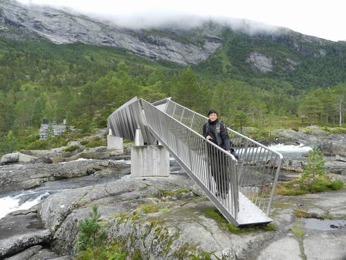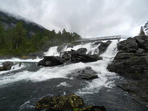 Una de les famoses àrees de descans porta al Likholefossen, un pont sobre un riu sobre una part de ràpids impressionants. El pont,