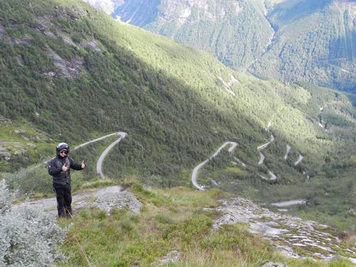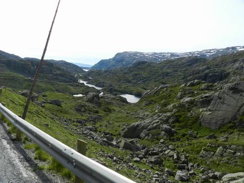 Cap al migdia el cel es va destapant i arribem a un altre carretera tipus Trollstigen, aquesta l'agafem de baixada i la vista des de dalt