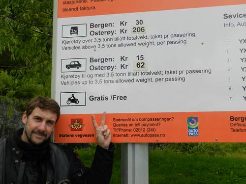 Al desviar-nos cap a Kristiansund ens fem un embolic en una cruïlla i ens fotem en un peatge en direcció contrària. Les motos no paguen