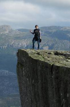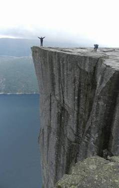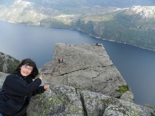 fotos de rigor a la vora del penya-segat de 605 metres sobre el fiord, però tot i que el dia s'havia aclarit força, hi ha una boira