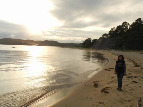 i sopem uns plats força bons: l'Eva un bistec de balena, per fi, que a Andenes es va quedar amb les ganes, jo un filet de no sé quin peix