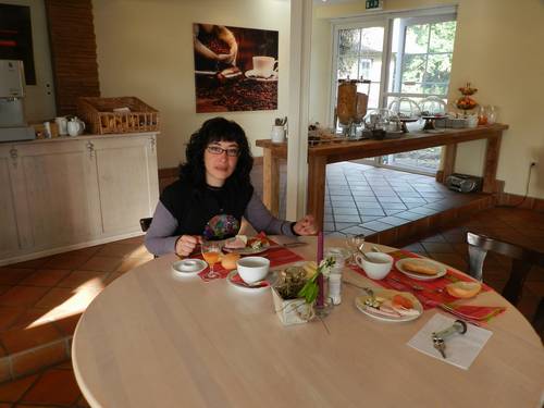 Esmorzem al buffet de l’hotel, no massa gran però molt bo. L'hotel és molt petitet, però té força d'encant.