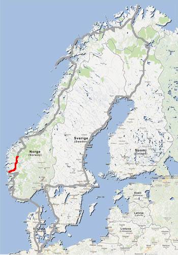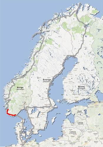 cap a les 2 del migdia el temps canvia i es posa a ploure, així que a Egersund tirem cap a l’interior a buscar la E39 i anem per