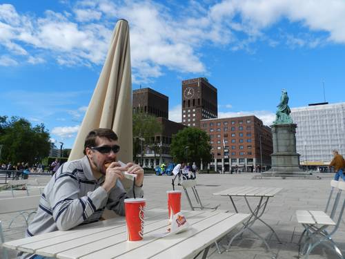 Embarcamos y poco más de 3 horas más tarde estamos en Moss-Rygge. Un bus gratuito nos lleva a la estación de Rygge y un tren al centro de Oslo.