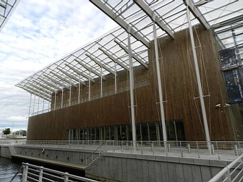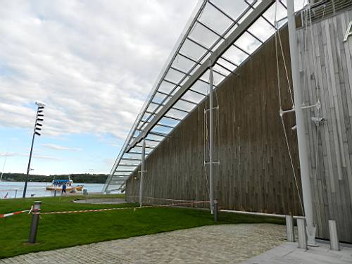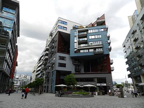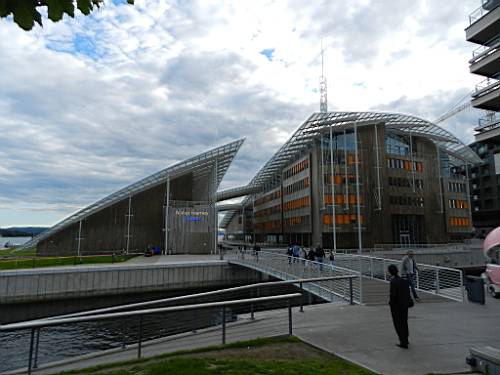 Vamos hasta el museo Astrup Fearnley de arte moderno, que no visitamos porque ya está cerrado. El edificio, del arquitecto Renzo Piano, es