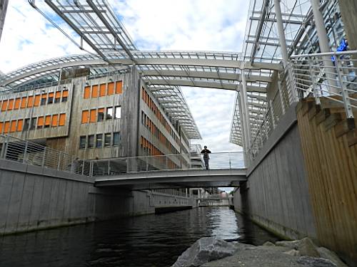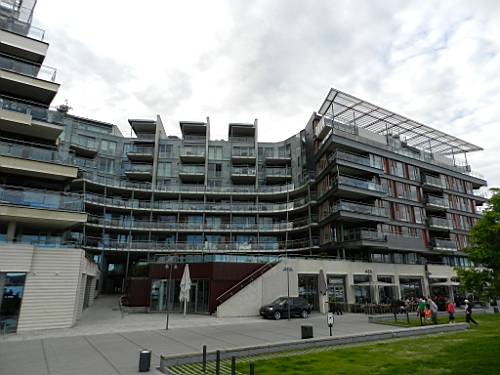 Paseamos por la zona de Tjuvholmen, que es muy nueva y los edificios residenciales son todos muy singulares. Estamos un rato en unas pasarelas
