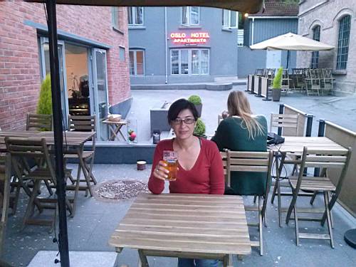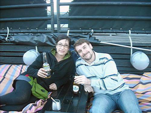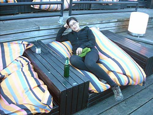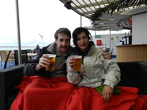 nos recuerdan mucho a las Lofoten del año pasado. Hacemos una cervecita en una de las terrazas al aire libre bien tapaditos con una manta ya que hace