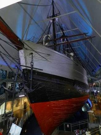 Comenzamos por el Fram, que explica las primeras expediciones al Polo Norte y al Polo Sur, y expone un barco real de aquellas expediciones. Inmenso.