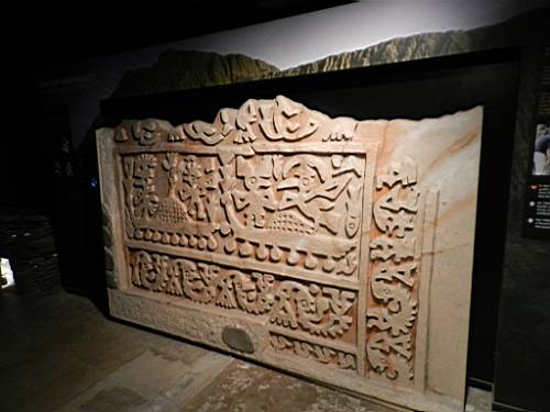 increíble: toda una serie de hombres, mujeres y niños en diferentes posturas a lado y lado de un puente, después un monolito gigantesco de unos 40m