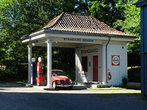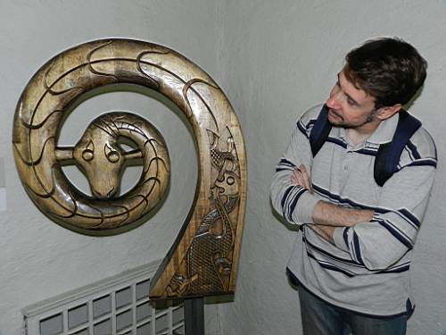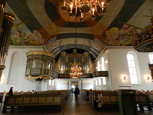 inaugurado en 1950 y con una colección de retablos de madera en el pórtico de acceso con escenas de la mitología escandinava. Sólo se puede acceder