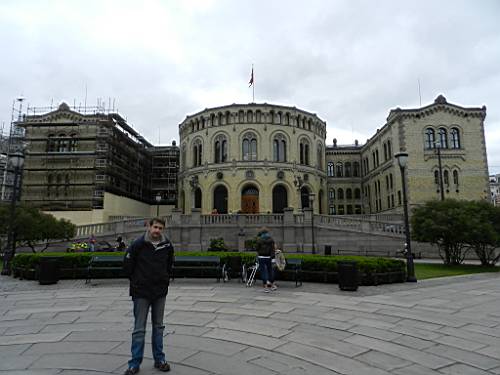 Después visitamos el Teatro Nacional (Nationaltheater) y el edificio del Parlamento (Stortinget), sede del parlamento noruego, también