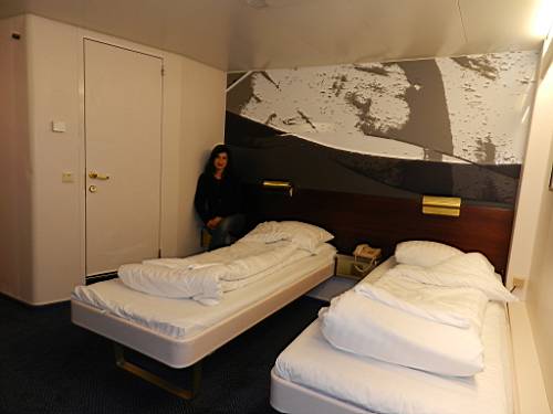 Volvemos a buscar las maletas y vamos directos al ferry. Hacemos el check-in, embarcamos y vamos al camarote, que pese a ser interior y tener las camas
