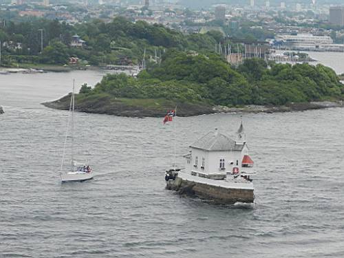 travesía, ya que la zona del fiordo de Oslo es preciosa y pasamos muy cerca de muchos islotes, algunos habitados y otros desiertos. Las casitas de colores