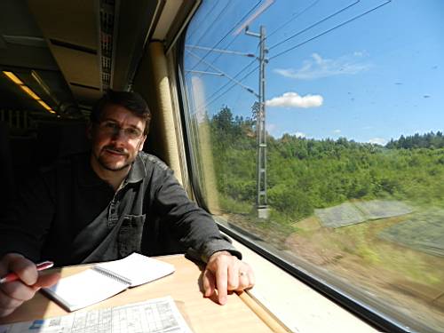 enseñamos los billetes al revisor nos recuerda que con el billete tenemos incluida la comida en el vagón bistro. Ostras, ya no nos acordábamos,