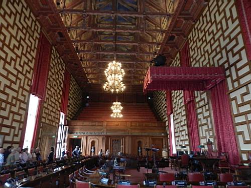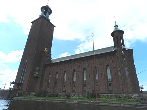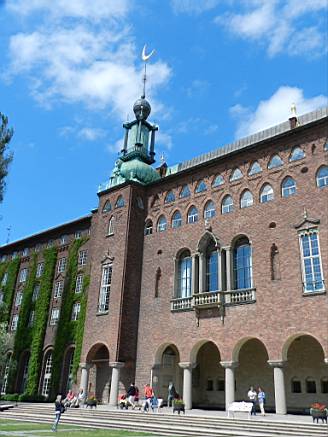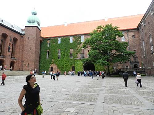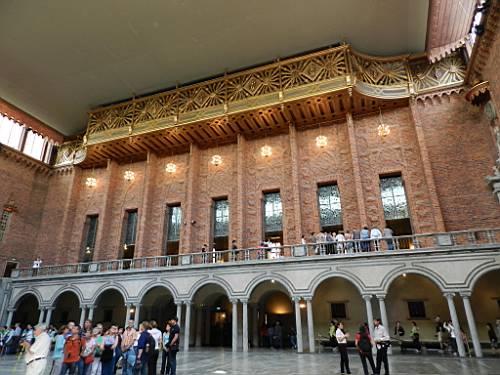 decoradas: el gran vestíbulo cubierto donde se celebra el banquete anual de los Premios Nobel, la sala de plenos donde se hacen las reuniones