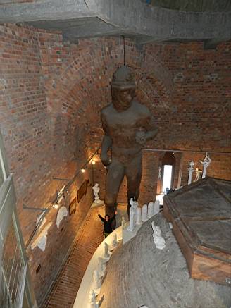 los modelos de las estatuas que hay en el ayuntamiento, entre las que destaca la enorme de San Erik (Eva ni se ve en la foto). El día se tapa y