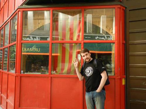 Vamos a la tienda de suvenires de al lado y en unos posavasos encontramos la plaza donde tocaba Per en el vídeo de Roxette grabado en el