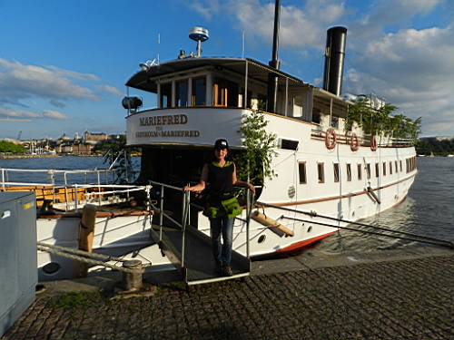 El Mariefred es un vapor del año 1905 que hace cada día este recorrido, que dura 3 horas y media. Hemos contado que vamos unas 10 personas